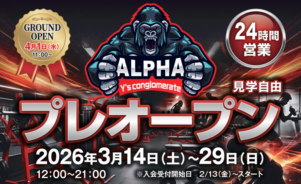 ALPHAジムは、24時間営業のフィットネスジムです。